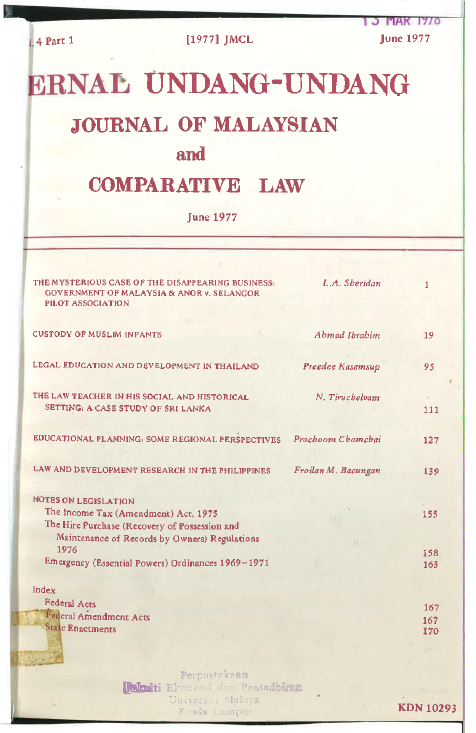 Vol. 4 No. 1. Jun (1977): Journal of Malaysian and Comparative Law
